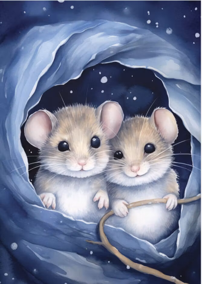 Underbart kort med de två små mössen som sitter så tätt ihop och verkar känna sig så trygga tillsammans.