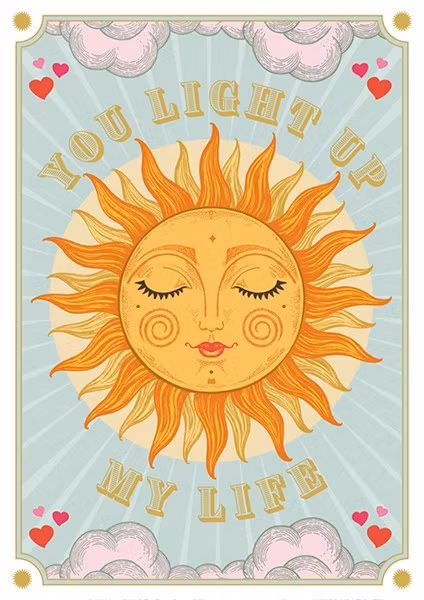 Underbart kort med gulddetaljer och detaljer som puffar ut från ytan. På kortet står det "You light up my life".