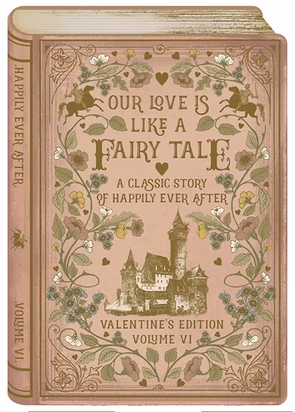 Format som en bok med texten "Our love is like a fairy tale. A classic story of happily ever after. Valentines edition Volume VI".