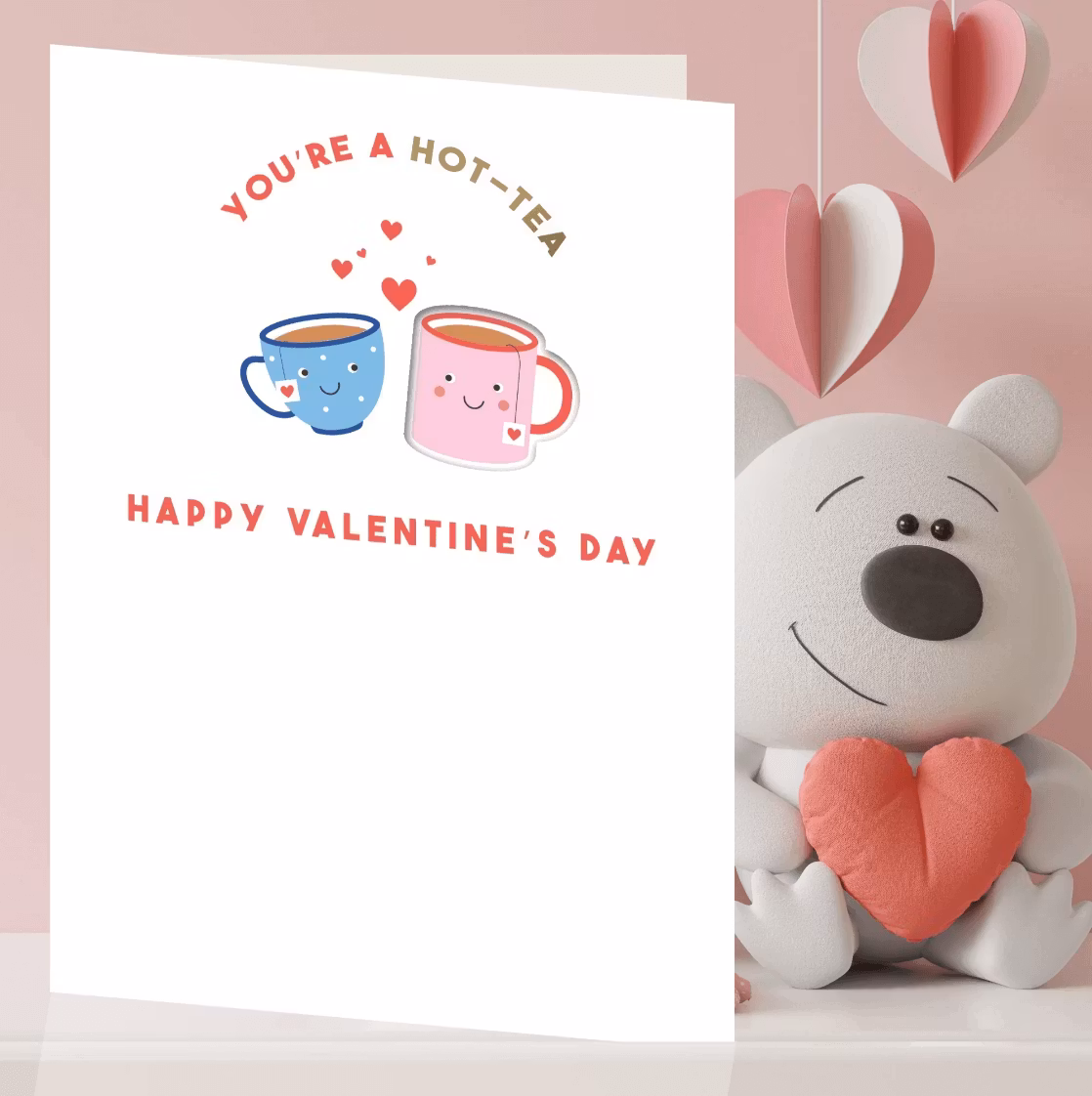 På kortet finns texten "You're a Hot-Tea. Happy Valentine's Day".