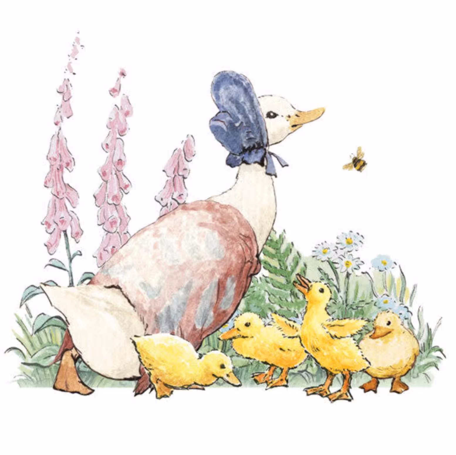 Mamma Anka ser efter de små ankungarna som är ute och ser sig om i världen
