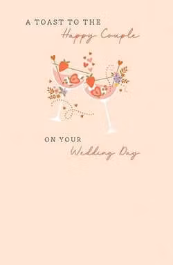 På kortet finns texten ”A toast to the Happy Couple on your Wedding Day”.
