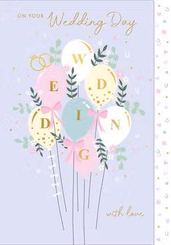 Underbart kort med ballonger och blommor i milda pastelltoner