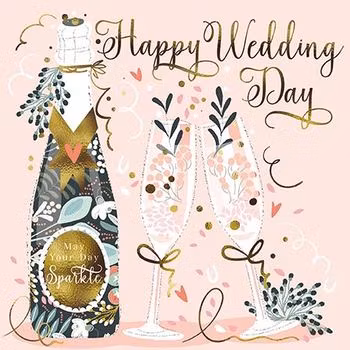 På kortet finns texten ”Happy Wedding Day, May your day sparkle”.