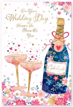 På kortet finns texten ”On your Wedding day, Here's to both of you”.