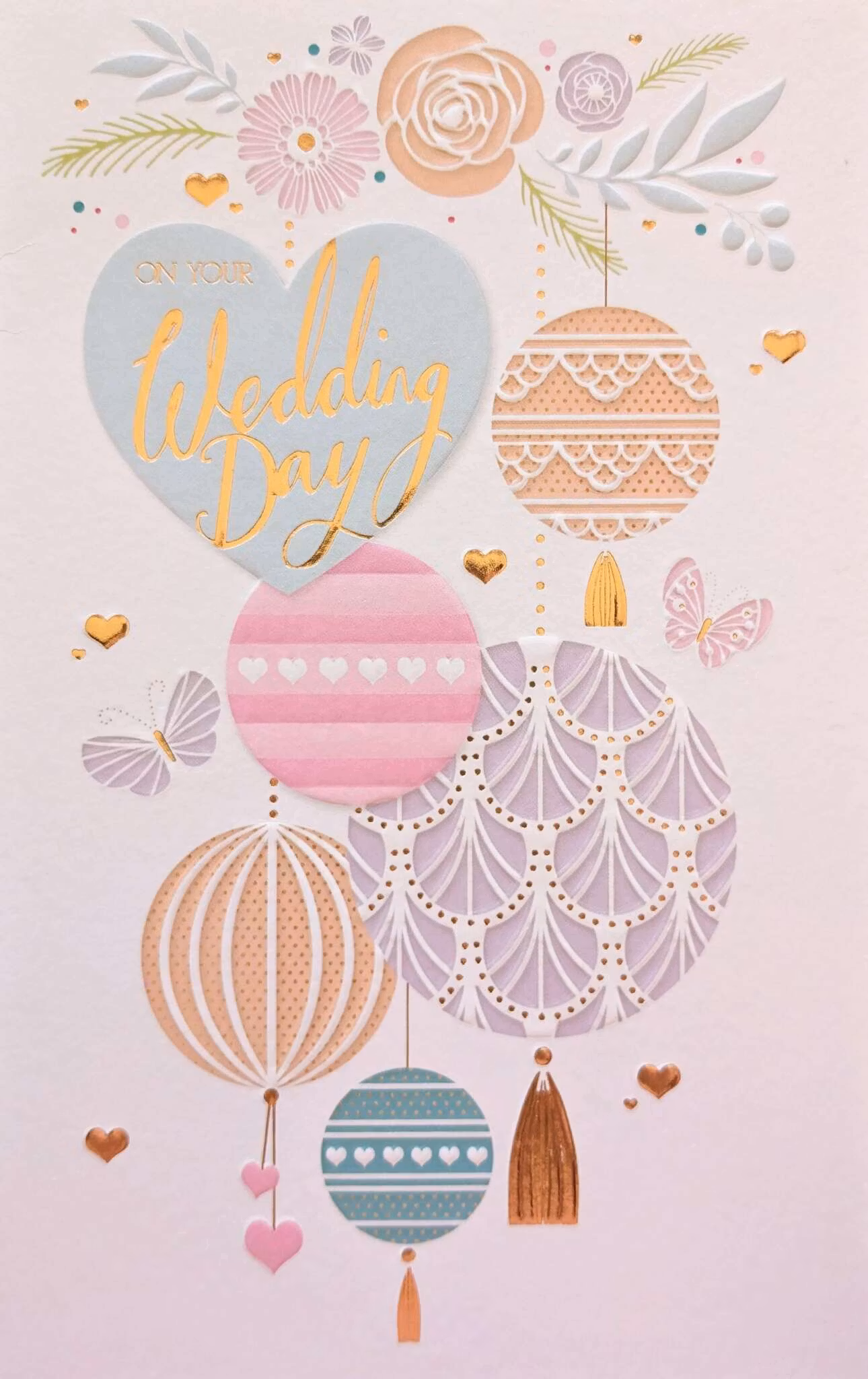 Dubbelt kort och på insidan finns texten "Wishing you a lifetime of happiness together"