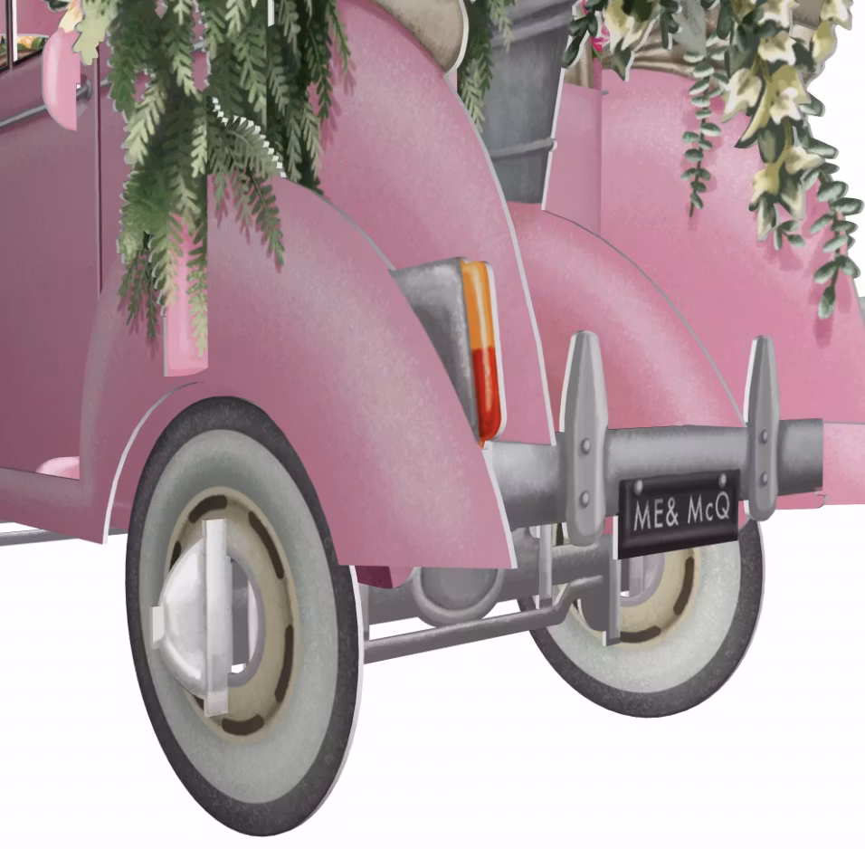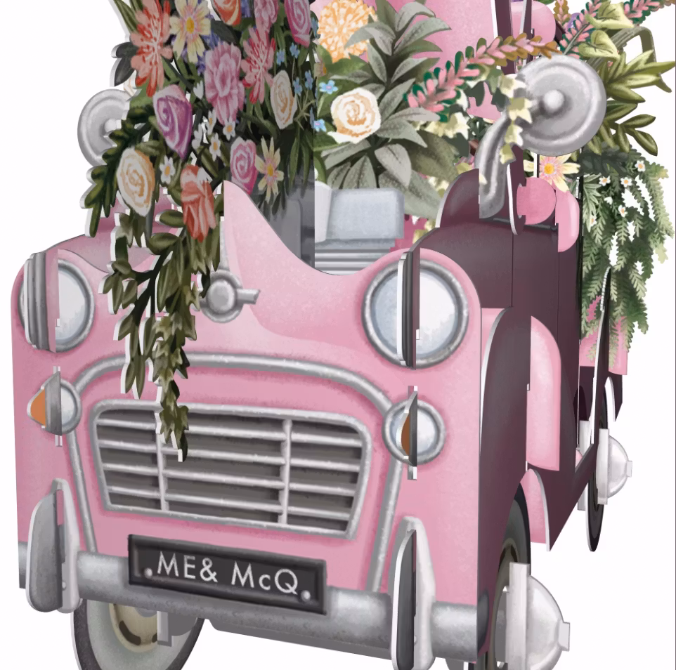 Underbart vacker bil med blommor och i hela kupén och motorhuven.
