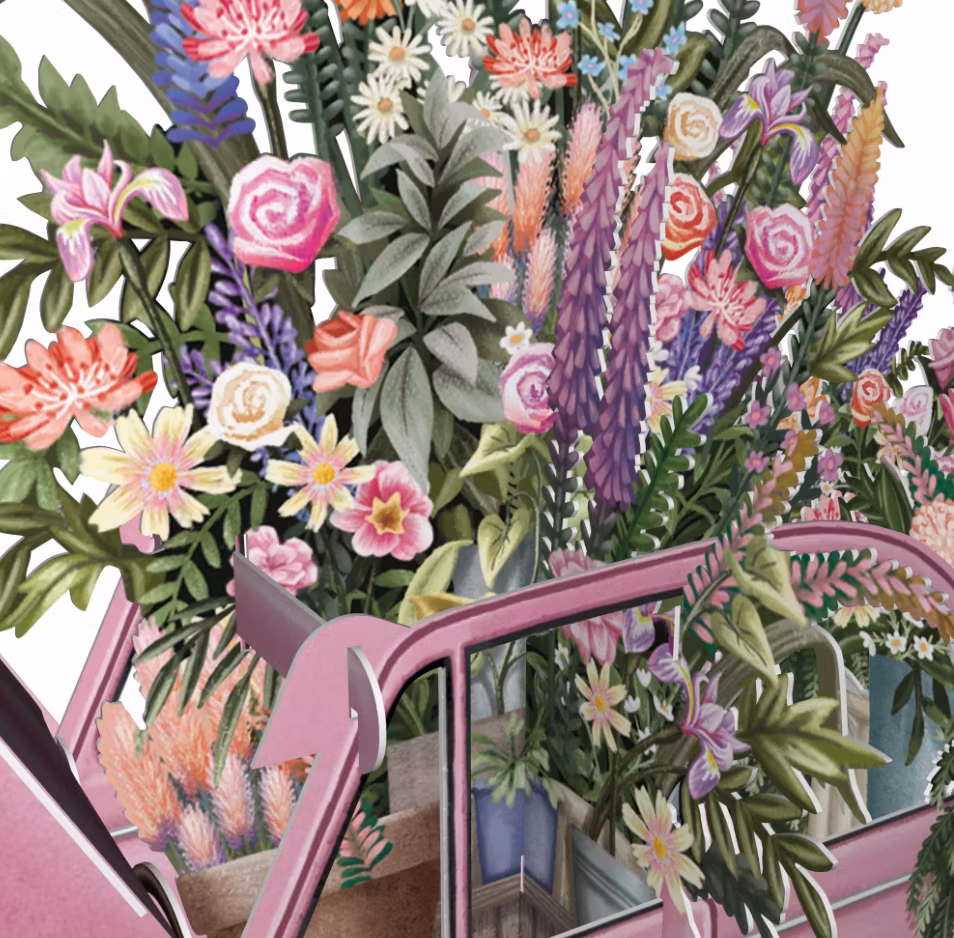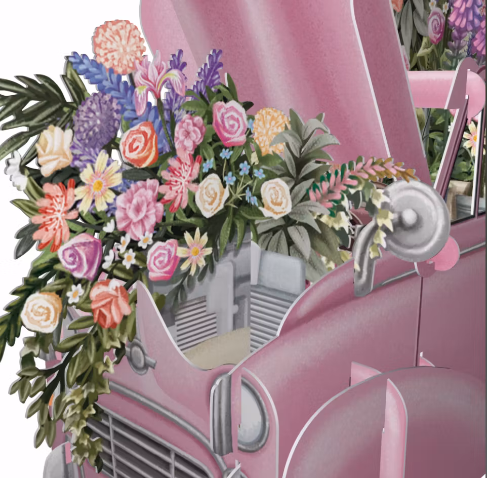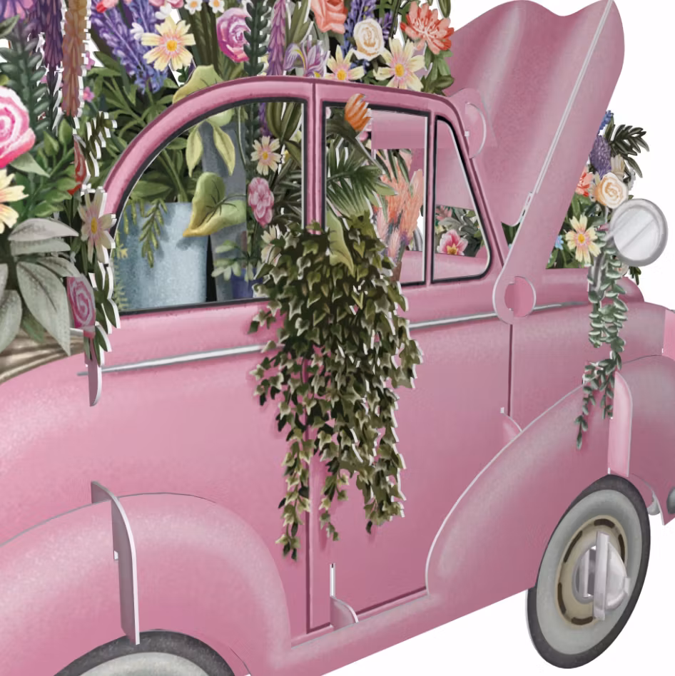 Härligt kort som levereras platt till mottagaren men som sedan viks upp och ut för att förvandlas till en vacker prydnad att ha på bordet.