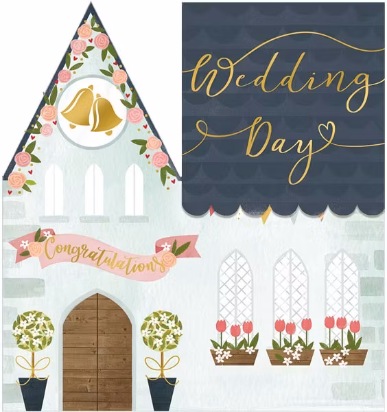 På kortet finns texten "Wedding day" "Congratulations".