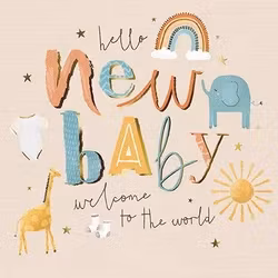 På kortet finns texten ”Hello new baby welcome to the world.”