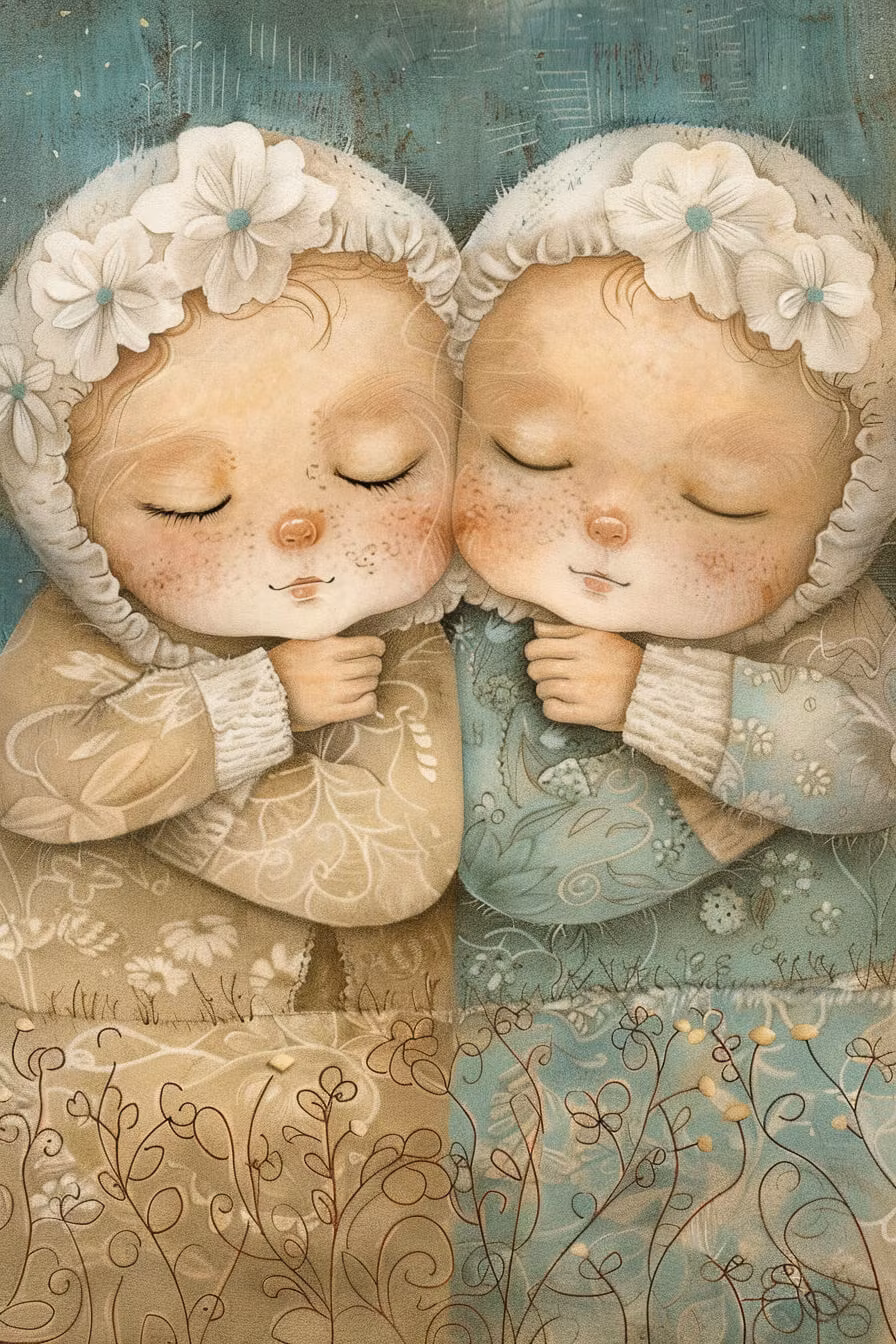 Underbart kort med de två små barnen som sover så fridfullt tillsammans.