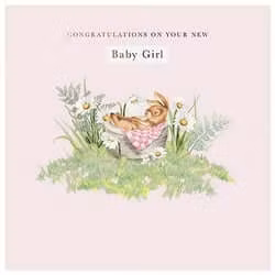 På kortet finns texten ”Congratulations on your new baby girl.”