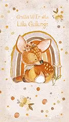 På kortet finns texten ”Grattis till Er söta Lilla Gullunge”.