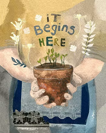 På kortet finns texten "It begins here".