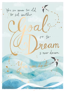 Härligt kort med texten "You are never too old to set another Goal or to Dream a new dream. You can do it"