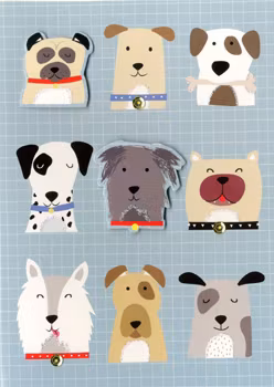 Härligt kort med en massa hundar. Vissa hundar finns i flera lager vilket gör att de står upp från kortet. Vissa hundar har glitter och diamanter i halsbandet.