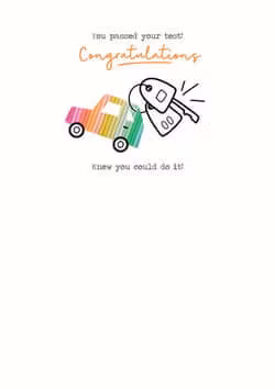 På kortet finns texten ”You passed your test! Congratulations. Knew you could do it!”