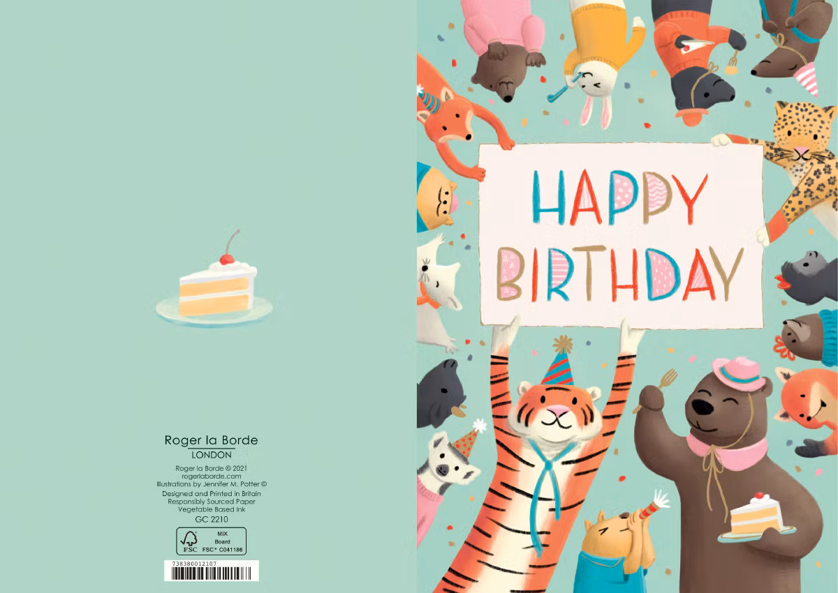 Alla djuren vill så klart vara med och fira den som fyller år! Härligt kort med härliga, varma färger.