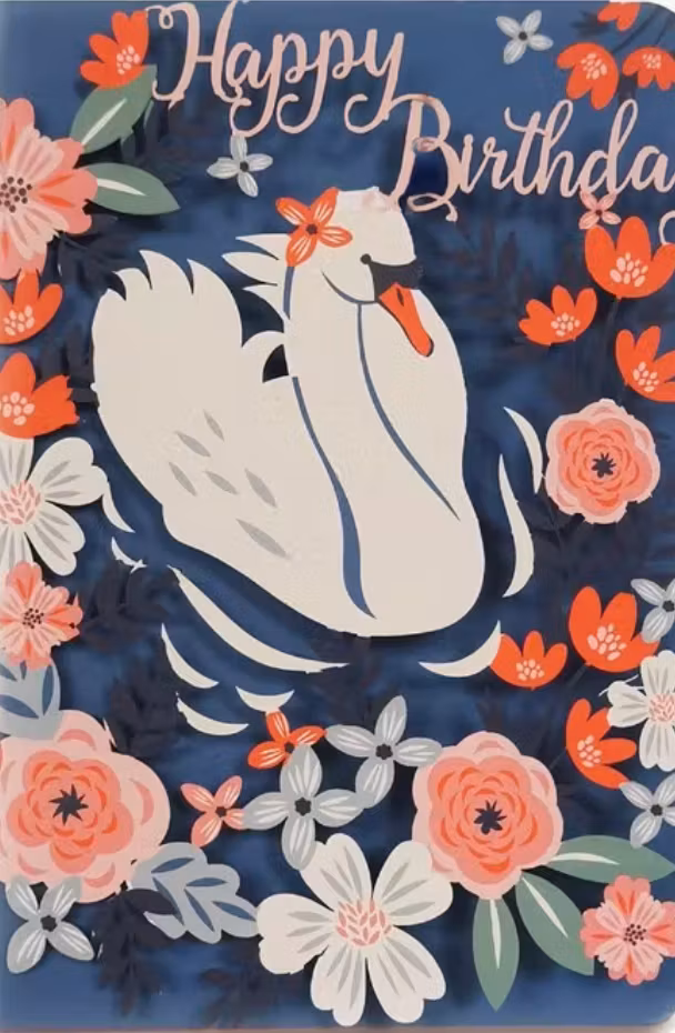 Underbart, laserskuret kort med motiv av en drömmande svan. Här är många detaljer av motivet utskurna från första sidan så att du ser en del av insidan från framsidan på kortet. Mycket vackert och arbetat kort.