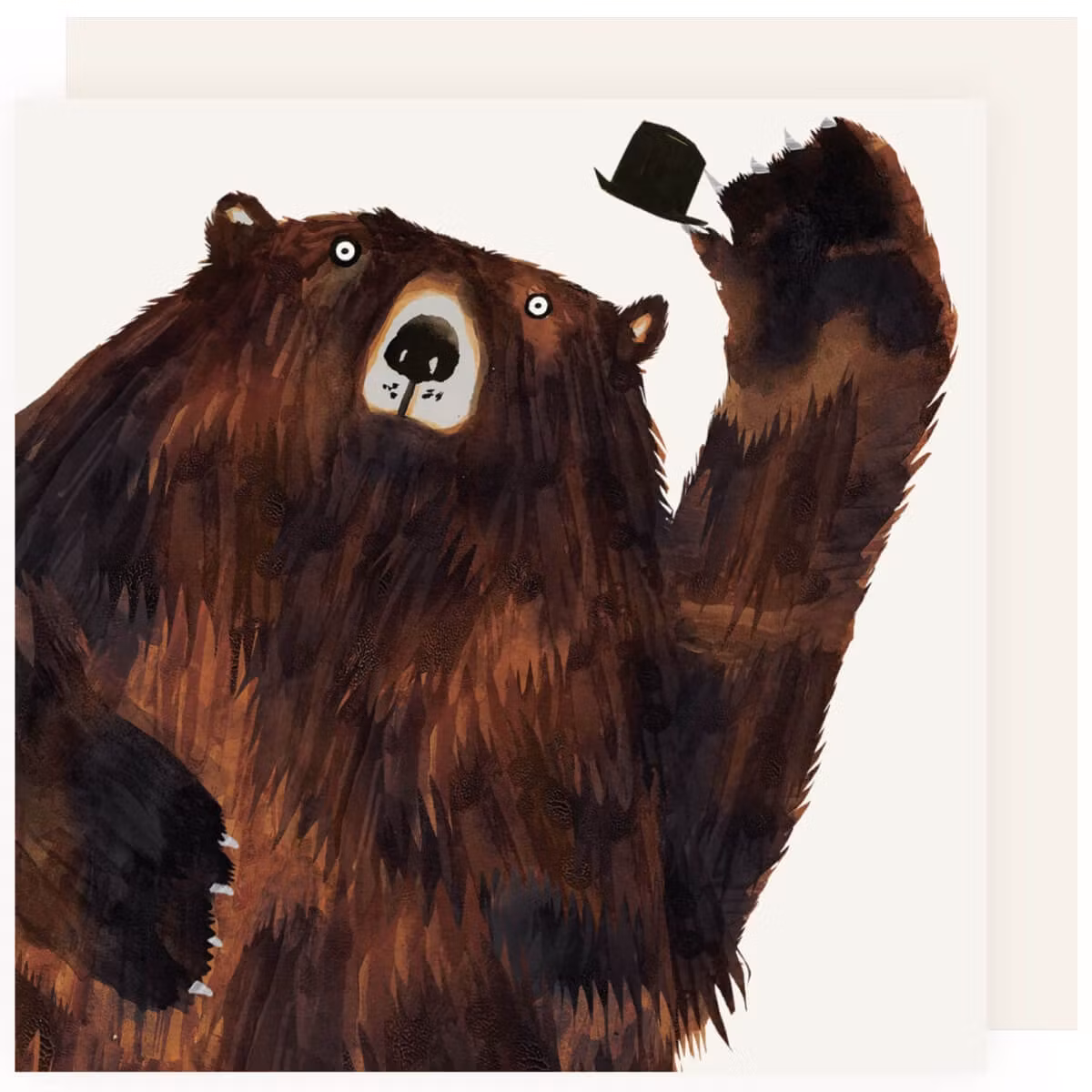 Härligt kort med björnen och hans lilla, men tjusiga hatt.