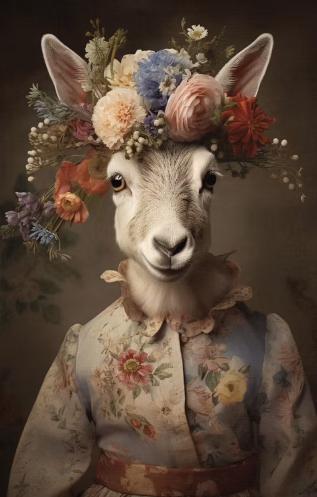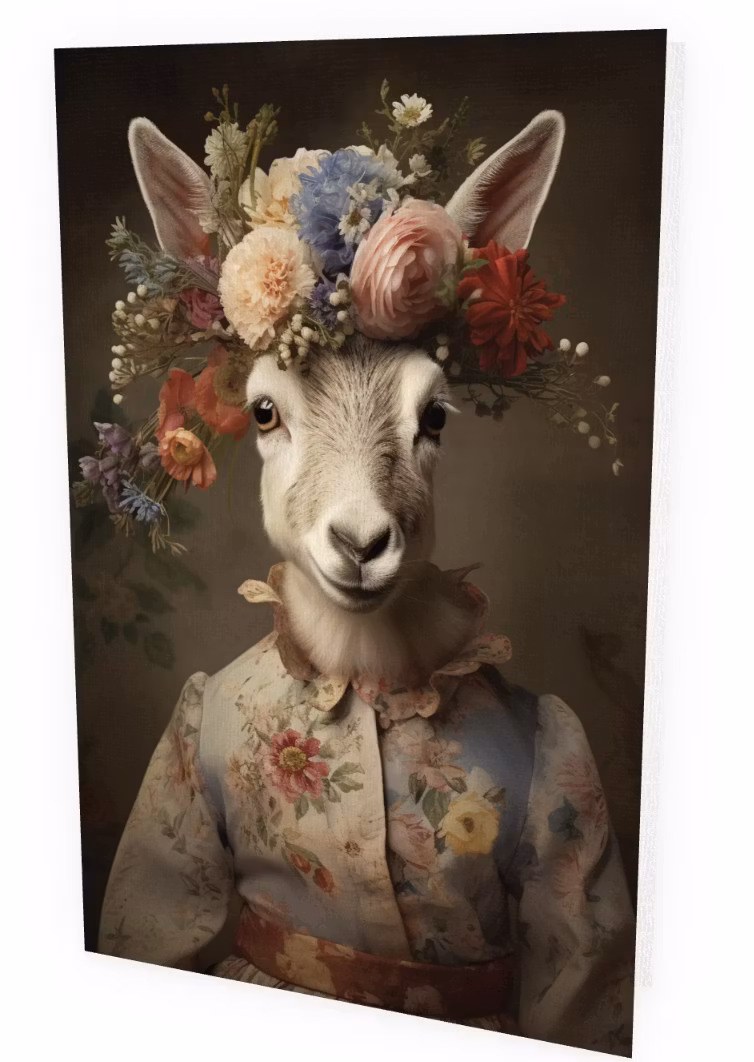 Underbart vackert kort med den vackra sagogeten som har klätt sig i blommor från både topp till tå.