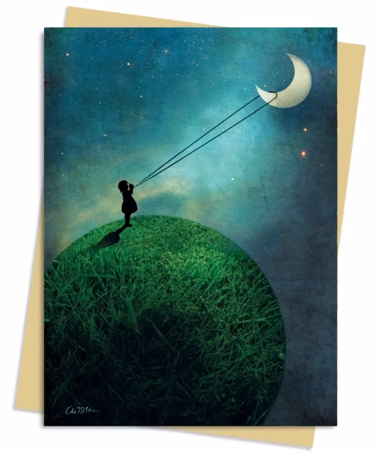 Fantastiskt fint kort med flickan som har fångat månen i ett snöre.
