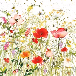 Underbart kort med den vackra blomsterängen full av blommor och humlor. Det finns ingen text varken i eller på kortet. Kuvert medföljer.