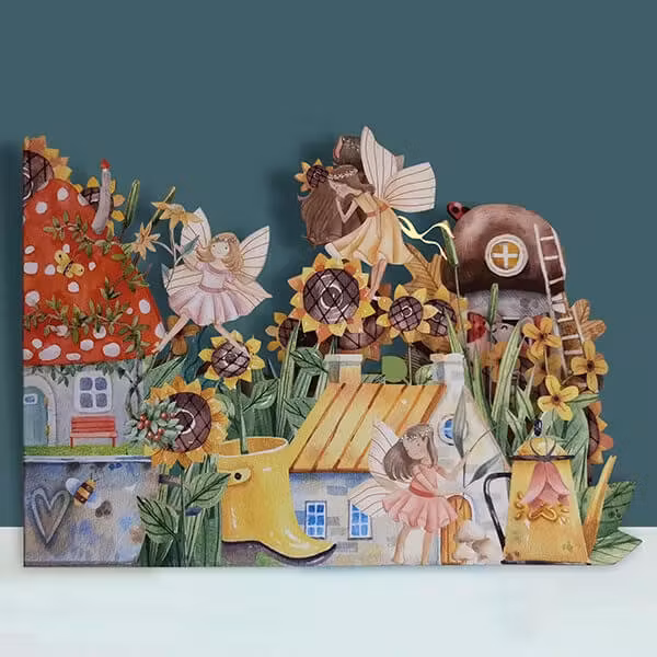 Ett härligt kort med älvorna som gör det fint i sin lilla by.