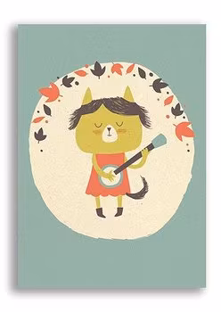 Underbart kort som föreställer en liten katt som spelar banjo. Kanske stämmer den musikälskande katten upp i örhängen som "Alla snubbar vill ju vara katt", "Lil