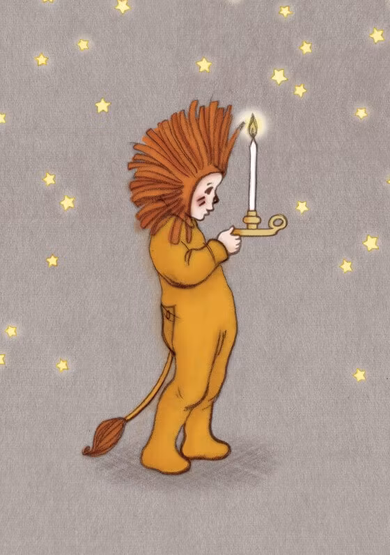 Oj, där är ett gulligt lejon! Bedårande kort med det lilla lejonet vaken mitt i stjärnnatten.