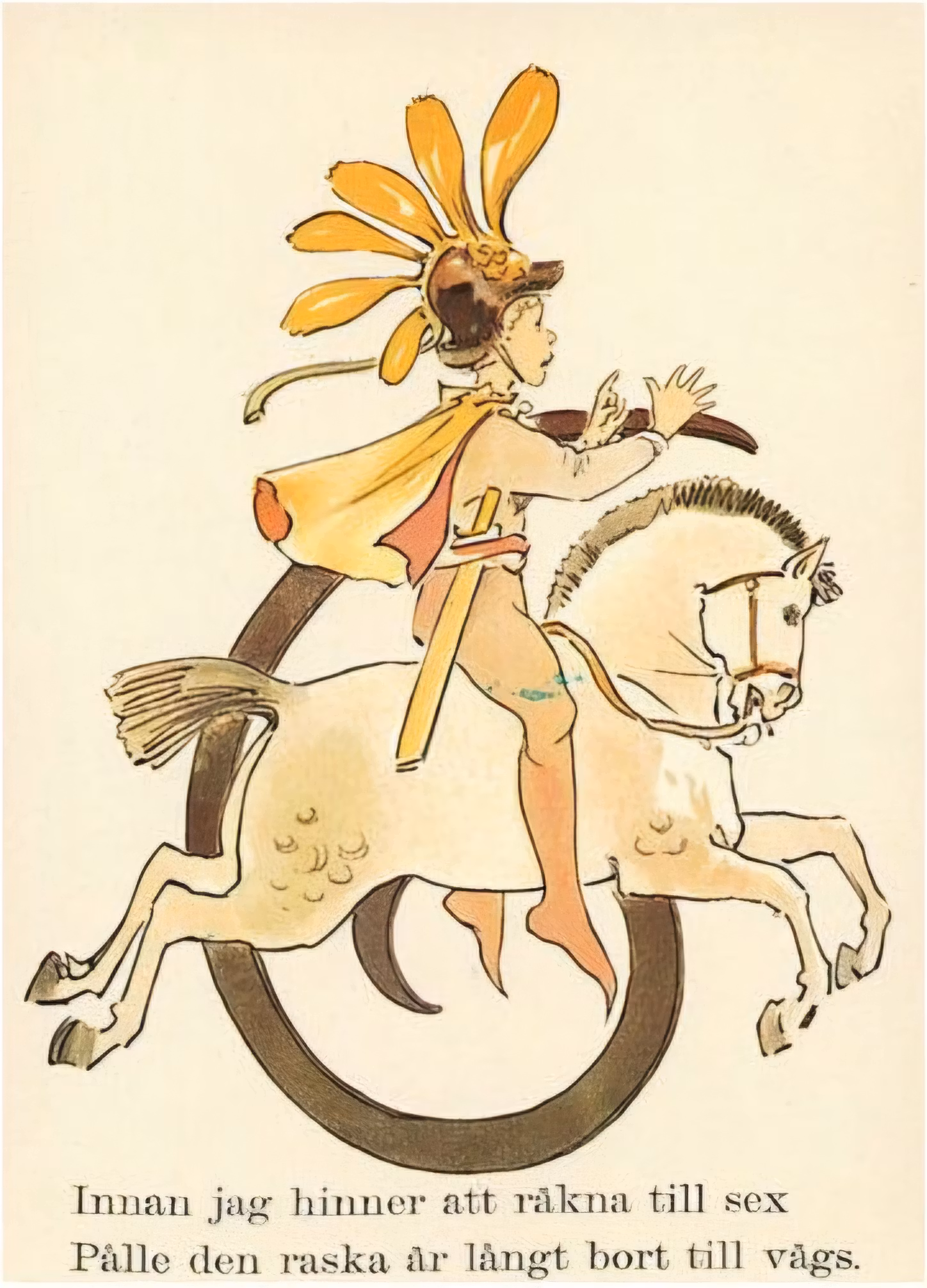 På framsidan finns texten: "Innan jag hinner att räkna till sex, Pålle den raskar är långt bort till vägs.".