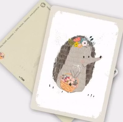Underbart kort med igelkotten som verkligen älskar sina vackra blommor.