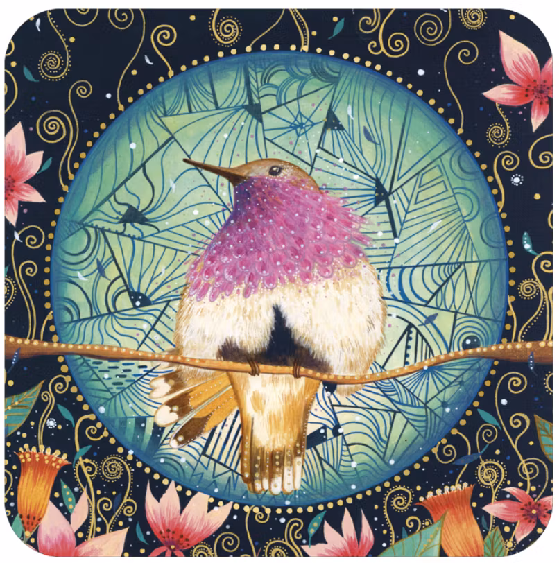 Härligt kort med en fågel som är så vacker att den måste vara förtrollad!