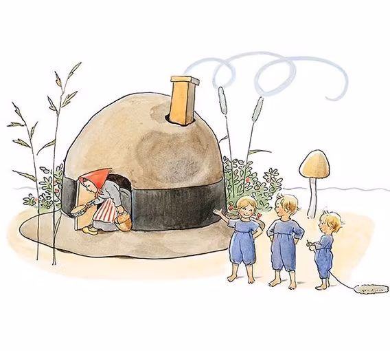 Vackert kort med det kända motivet från Elsa Beskows Hattstugan