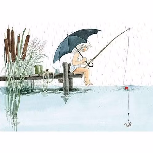 Tänk så härligt att sitta på bryggan och meta samtidigt som ett varmt sommarregn dansar ner från himlen. Och visst nappar det väl extra bra när det regnar?