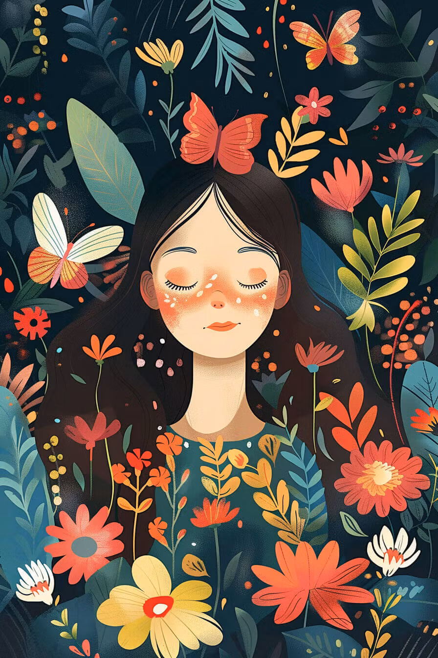 Underbart kort med flickan som blundar och drömmer. Kanske drömmer hon om sommarens ljumma vindar som sveper över rapsfälten?