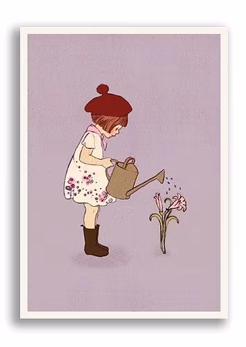 Nu är tid att fröjdas över allt som växer! Naturen är läkande sägs det ju, och Mr Humblebee tycker att naturen är både läkande och lekande. Det här fina lilla kortet visar ett barn i gummistövlar som vattnar en blomma. Skicka kortet till någon du tycker om och odla er kärlek! Det kan också vara en fin blinkning till någon som fyller år -dvs växer...
