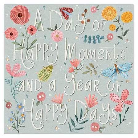 På kortet finns texten "A day of happy moments and a year of happy days".