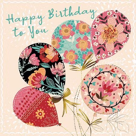 Ett härligt kort med vackra ballonger i olika mönster och färger.
