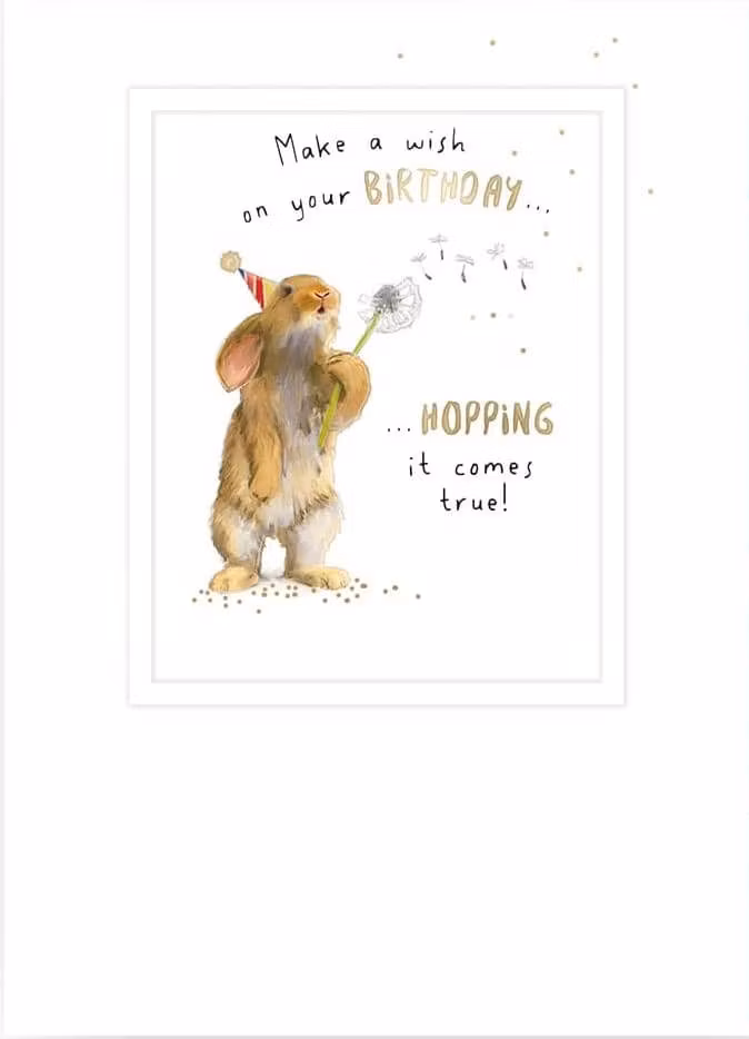 På kortet finns texten ”Make a wish on your Birthday... ....Hopping it comes true!”.