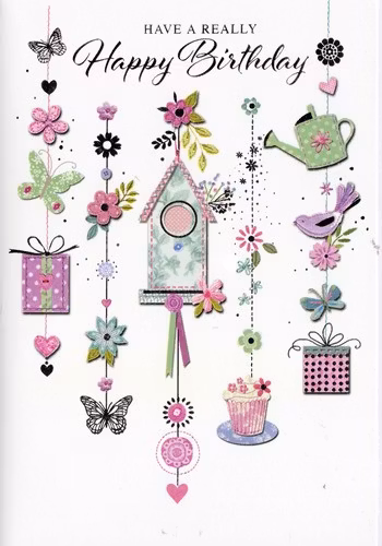 I kortet finns texten "Wishing you a wounderful birthday that brings everything you´re hoping for".