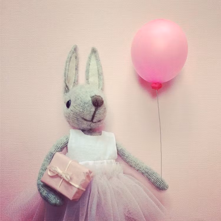 Ja, må du leva uti hundrade år! Den fina lilla ballerinan kommer med present och ballong för att fira födelsedagsbarnet. Eller är det en namnsdag som ska firas?