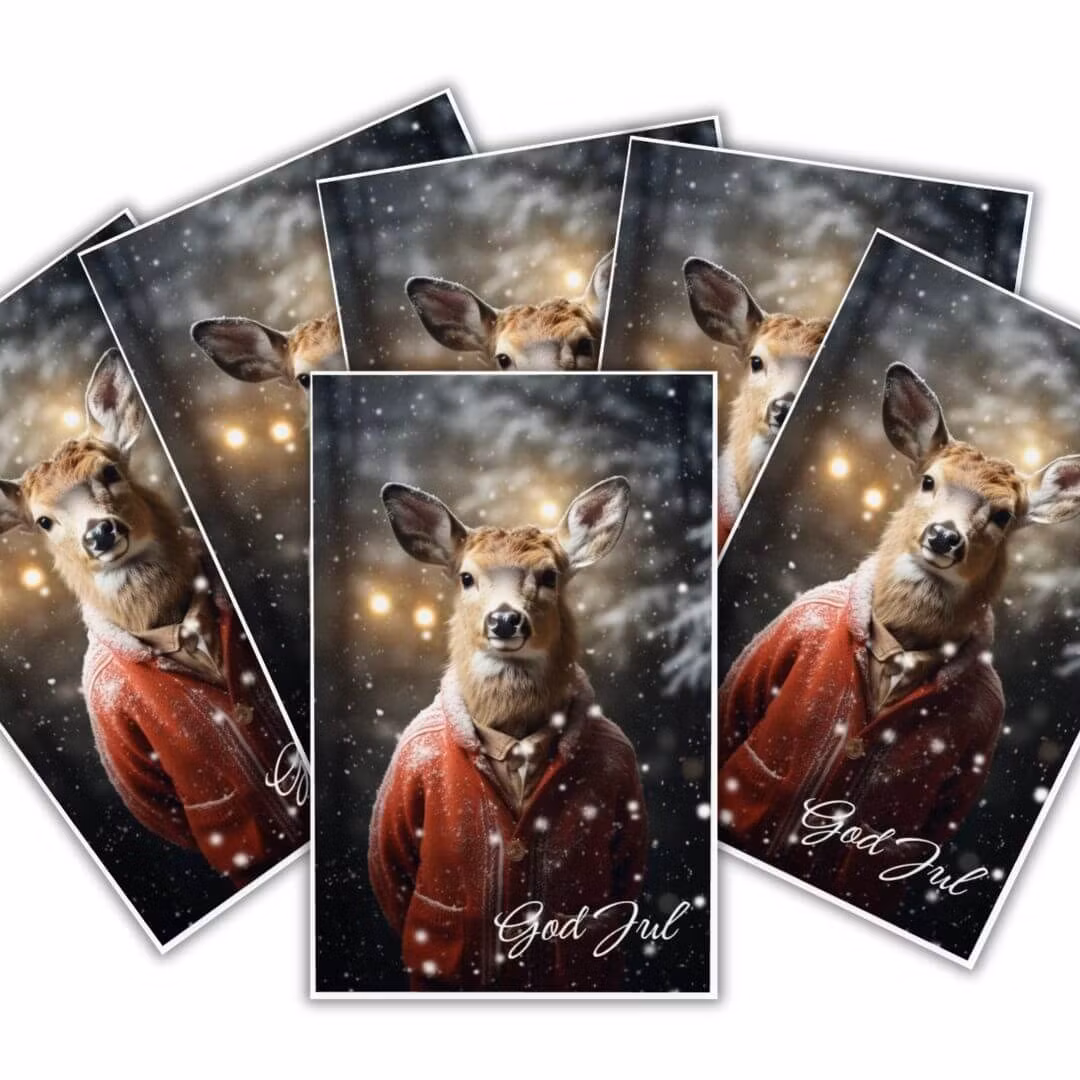 Här finns en förpackning med 6 underbar kort med det ståtliga sagorådjuret som önskar mottagaren en riktigt God Jul.