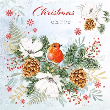 Underbart kort med den fina fågeln som sitter på en grangren. På kortet finns texten ”Christmas cheer”. Kuvert medföljer.
