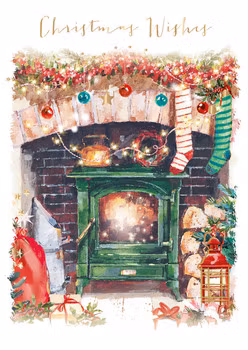 Underbart kort med den vackra spisen som värmer i stugan. På kortet finns texten ”Christmas Wishes”. Kuvert medföljer.