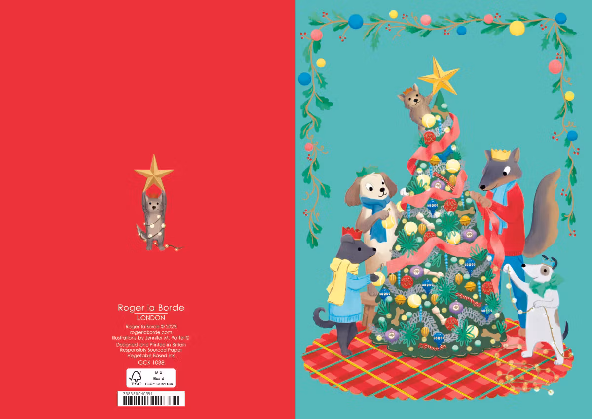 Hundarna firar jul och naturligtvis pyntar man granen med det man tycker allra bäst om.