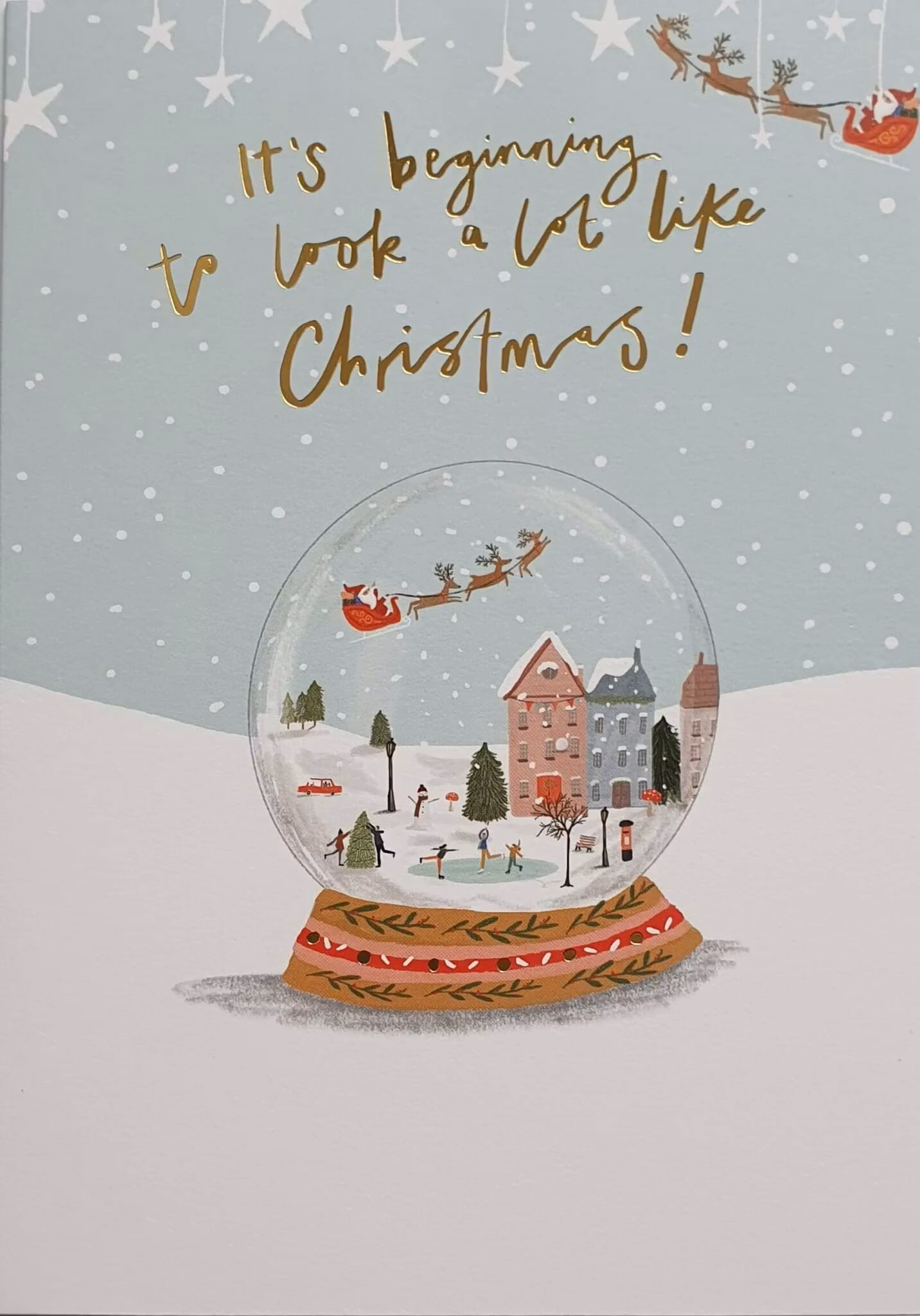 Härligt kort med den lilla snögloben som är full av jul. Vissa delar av kortet är har guldplättering vilket gör det till ett extra lyxigt kort. Kuvert ingår.