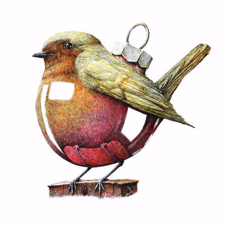 Ska den här kulan hängas upp i granen eller är fågeln lyckligast om den själv får flyga från gran till gran?
