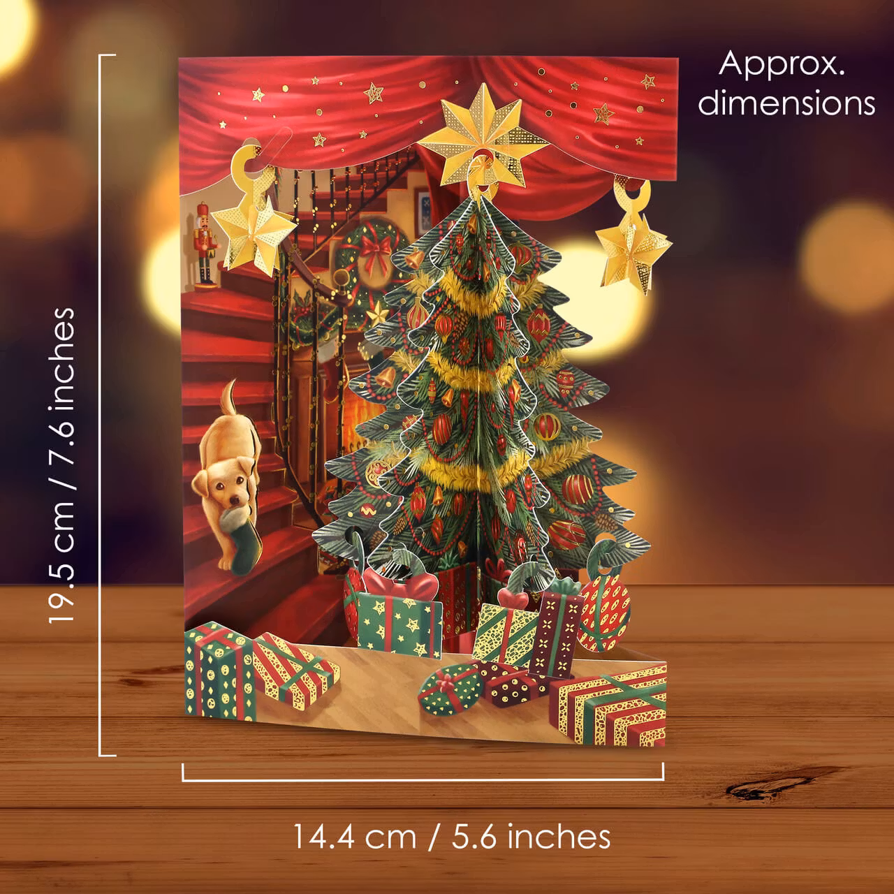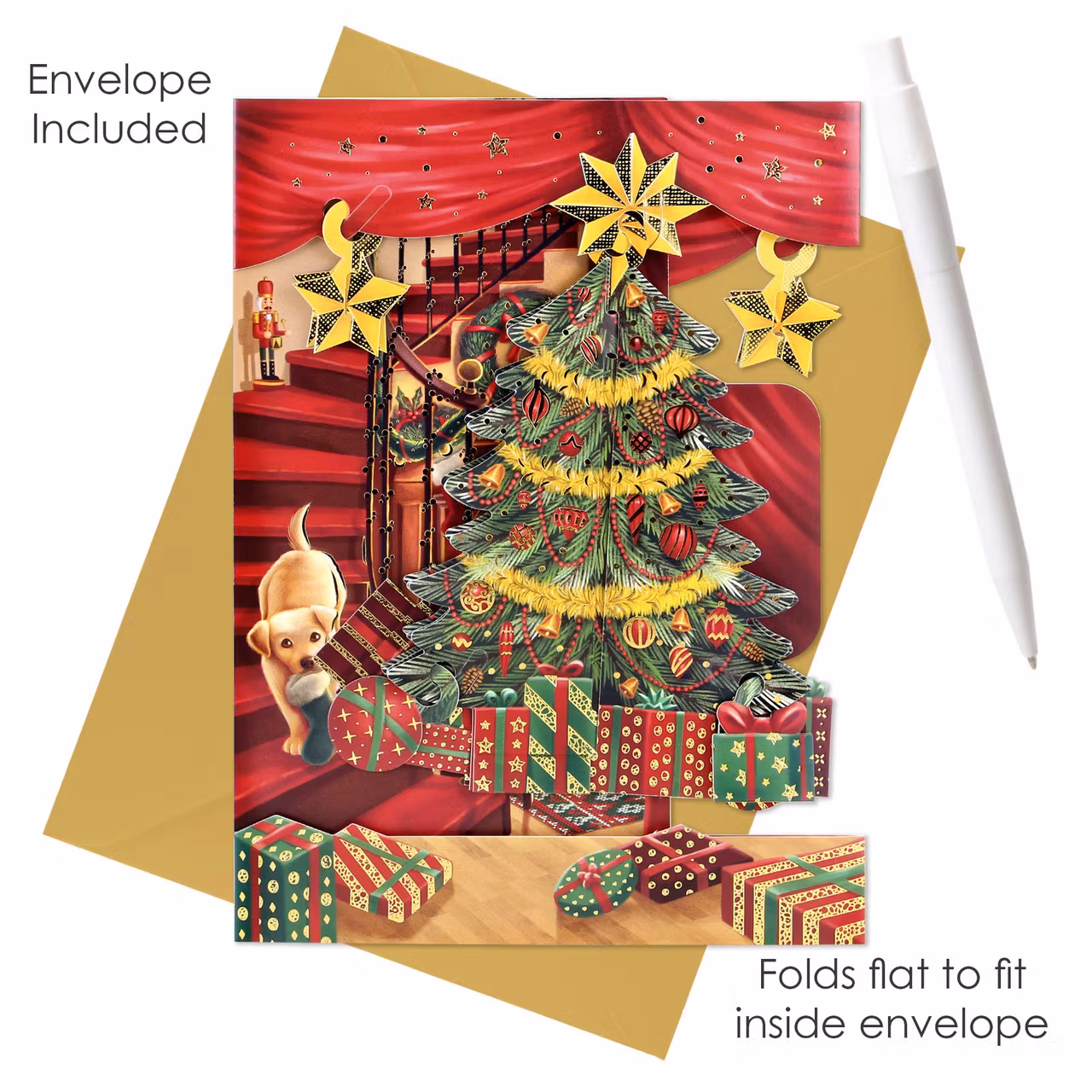 Ett riktigt fint, utvikbart kort med flera rörliga delar. Kortet är målat vackra färger som skapar en härlig känsla. Det här kortet levereras platt och mottagaren viker sedan lätt upp det. Du skriver din hälsning till mottagaren på baksidan av kortet. Det här är mer som en kombination av kort och present än enbart ett kort. Mottagaren kommer vilja ha kortet framme länge, länge för att hinna titta på det ordentligt.