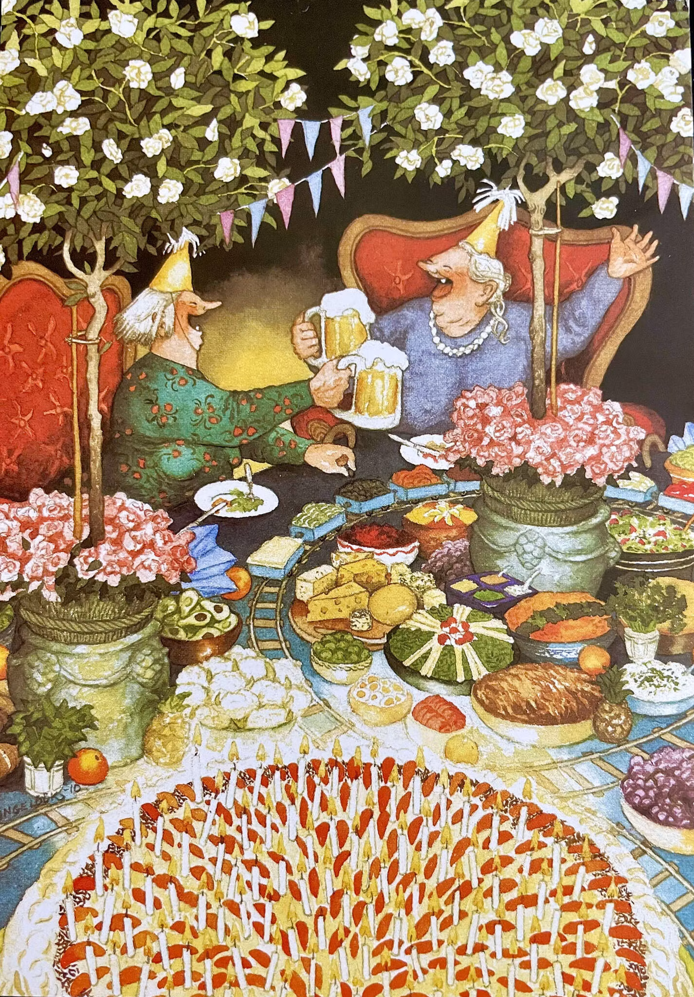 Här sitter de lyckliga damerna och har ställt till med en riktig oktoberfest tillsammans. Kanske passar detta kort perfekt till någon som du vill fira något med.